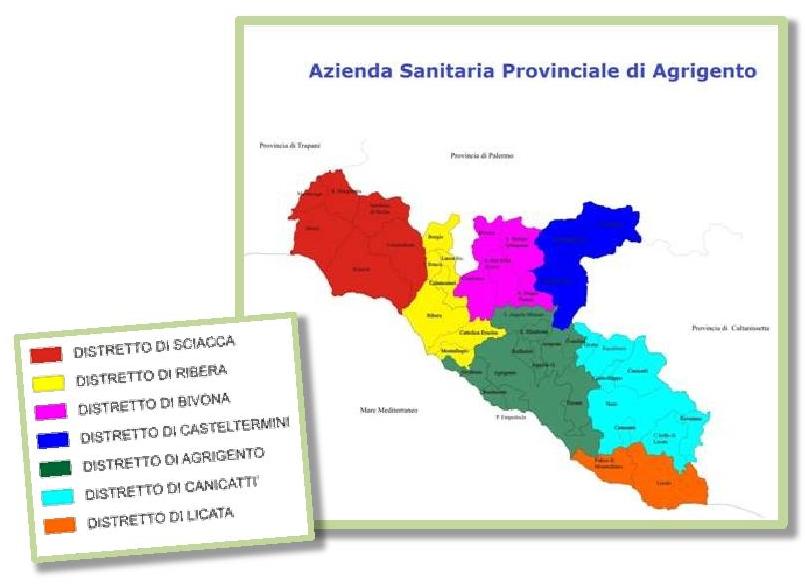 All’interno dei confini dell’ASP di Agrigento ricadono 42 comuni, distribuiti tra: