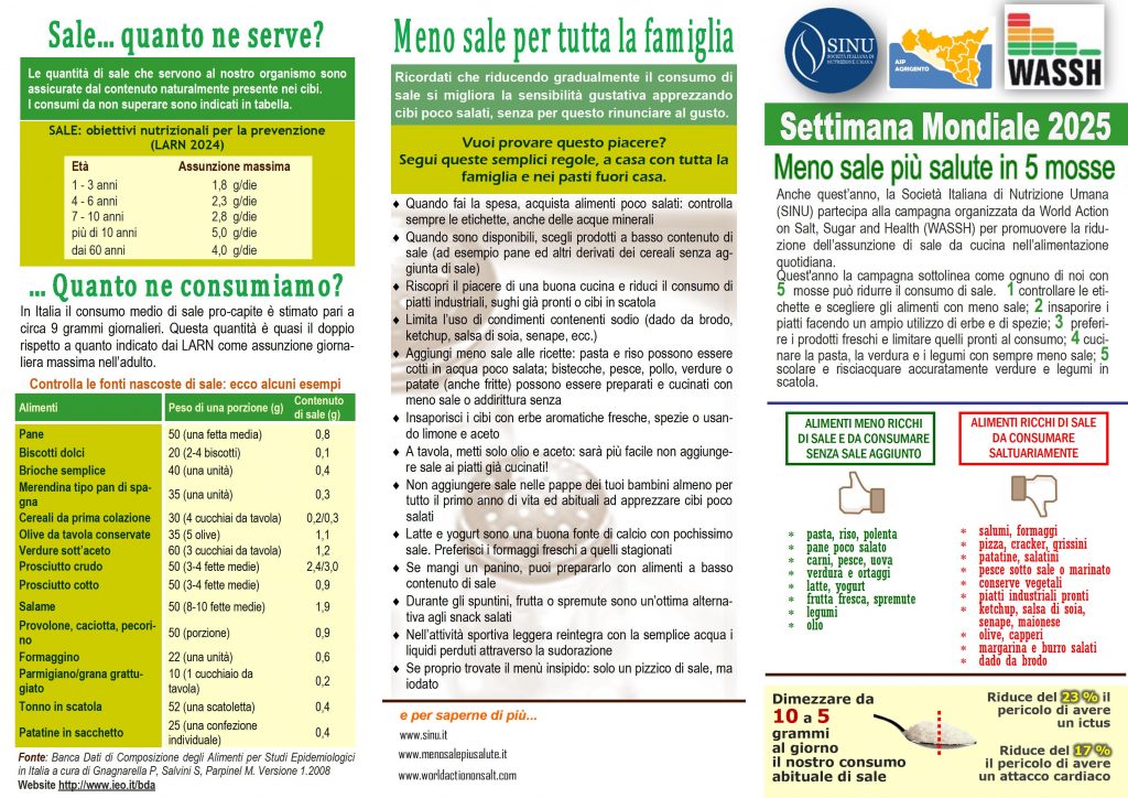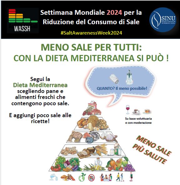 Anche quest’anno la Società Italiana di Nutrizione Umana (SINU) partecipa alla campagna organizzata da World Action on Salt, Sugar and Health (WASSH) per promuovere la riduzione dell’assunzione di sale da cucina nell’alimentazione quotidiana. Quest’anno la campagna sottolinea il valore della Dieta Mediterranea nel facilitare la riduzione del consumo di sale.