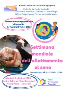 📍 A Canicattì, il 7 ottobre, nell’ambito del Percorso di preparazione alla nascita, si terrà un incontro dedicato alle future mamme per la promozione dell’allattamento al seno e per la diffusione di corrette informazioni sul benessere di mamma e bambino.